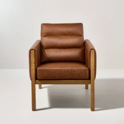 Faux Leather Upholstered Accent Arm Chair – Cognac – Hearth & Hand™ With Magnolia